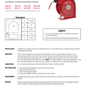 When it comes to replacing the hose, you must follow safety protocol for your shop or facility. This could require PPE (personal protective equipment) such as safety glasses or other cautionary actions that you feel are needed to be safe. Secondly, you need to turn off any supply lines connected to the reel or hose and bleed the hose. Once all of this is completed, pull the hose completely off the reel and lock the reel. Make sure your reel is locked. If you let go of the hose and the reel is not locked, nothing is stopping the hose from flying back onto the reel. This is a dangerous situation and can cause injuries.
