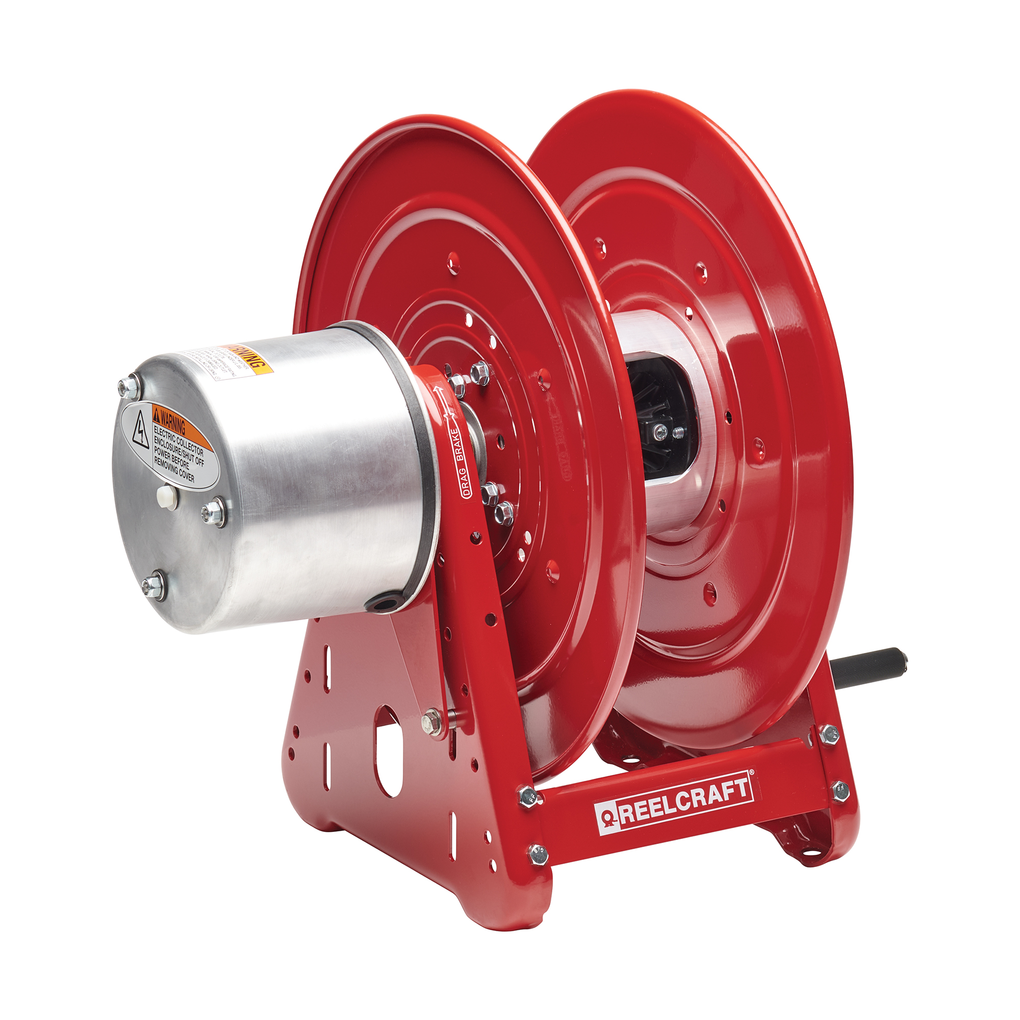Reelcraft’s Series CEA welding cable reels are designed to increase safety in the work area with a resulting increase in efficiency and productivity. They have a continuous current path through a live 400 AMP, 90 V DC (maximum) rated enclosed slip ring. For indoor, non-weather tight applications only.