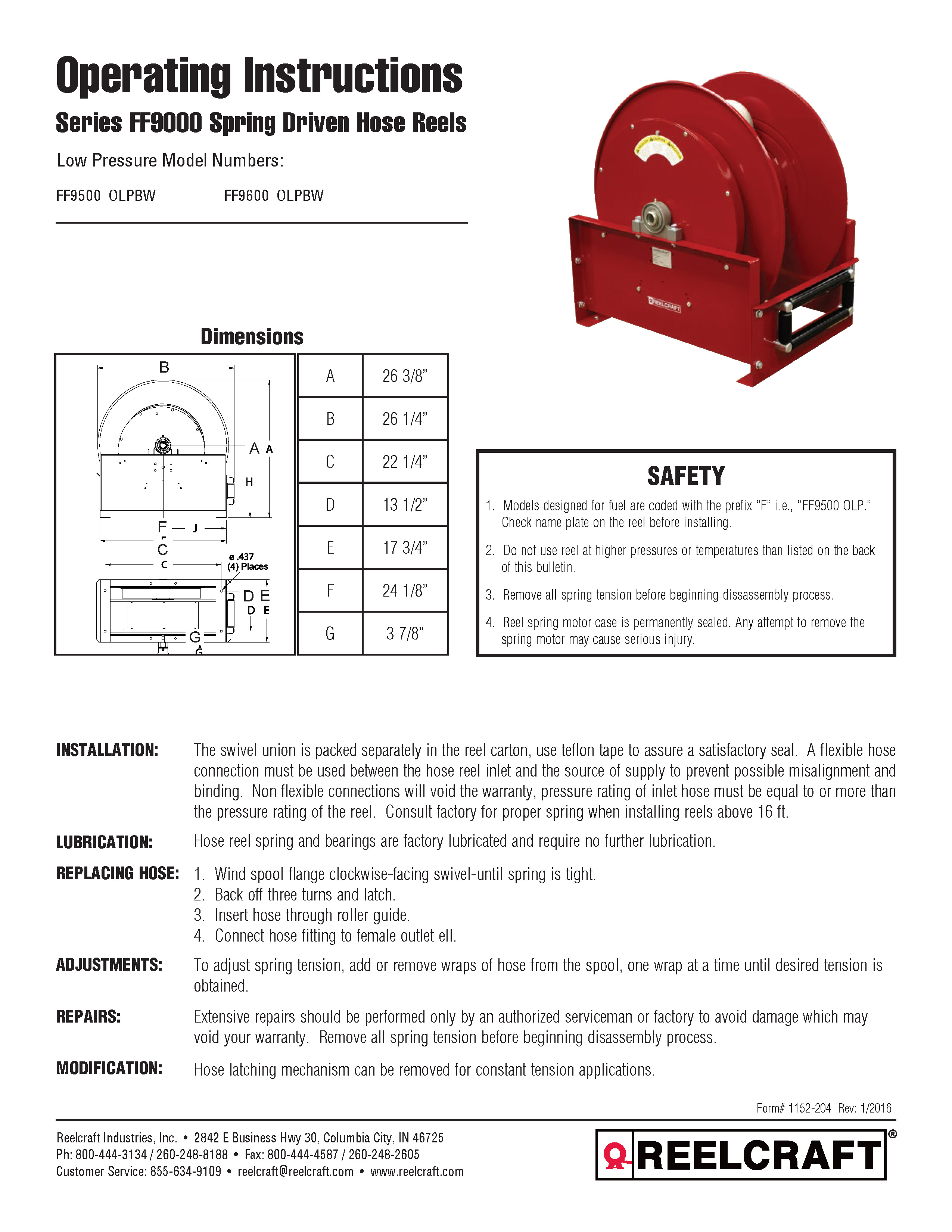 NOTE: Reelcraft Series 9000 reels only ship LTL. Small parcel shipments are not available for this model.