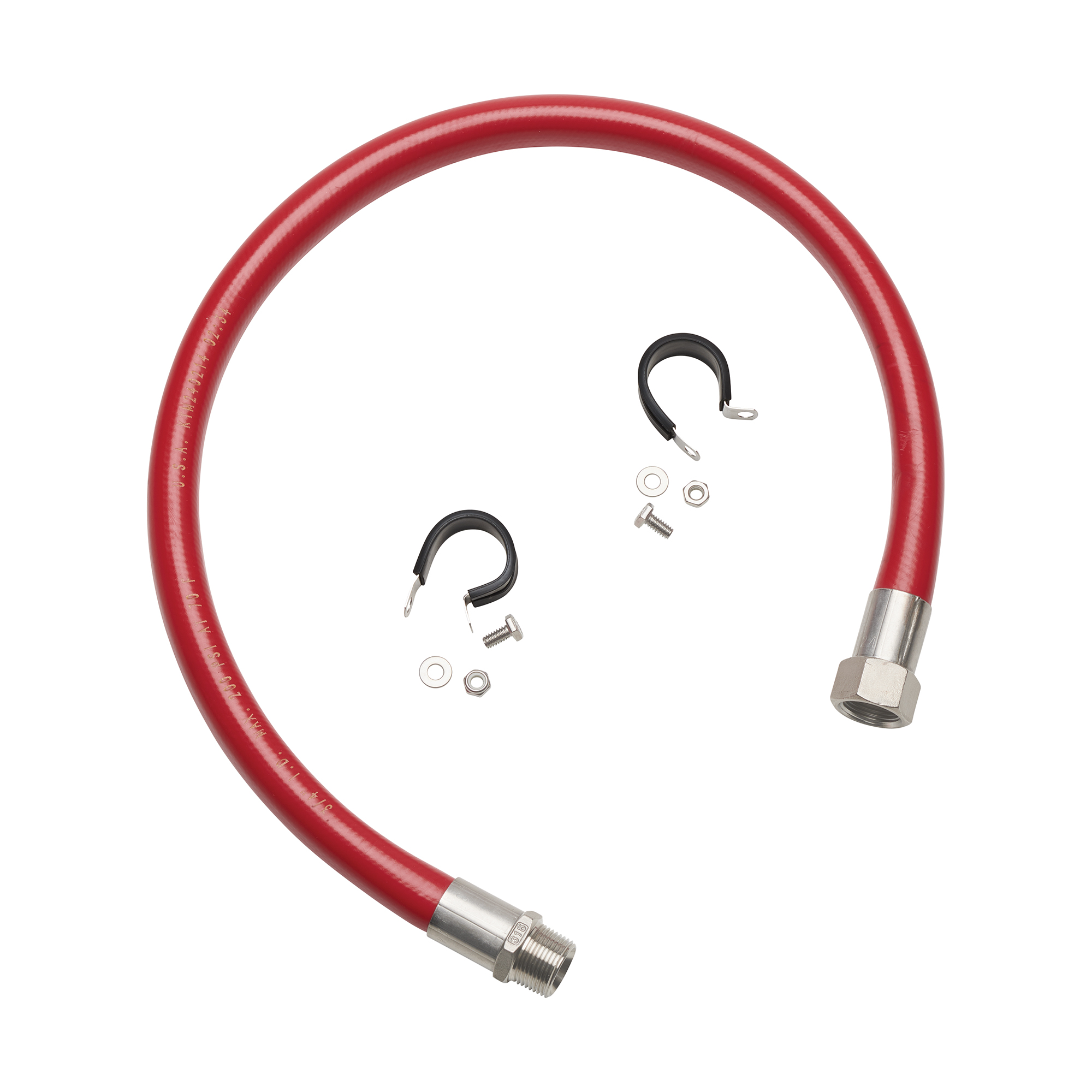 S602975 – Series 20000 3/4 in. x 3 ft. Low Pressure Whip Hose Kit Kit includes (1) 3/4 in. x 3 ft. hose, (2) 1 in. I.D. SS loop clamps, (2) screws, (2) SS washers, and (2) 18-8 SS nyloc nuts. Part NumberS602975Weight2 lbsHose TypeChemicalHose I.D.3/4"Hose Length3'Pressure200 psiEnd Fitting 13/4" NPT(M)End Fitting 23/4" NPT(F)UPC699567031925 SKU: S602975 Category: Inlet Hose Assemblies