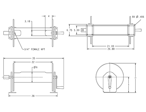 C23022 H – Heavy Duty 22 in. Aluminum Hand Crank Hose Reel