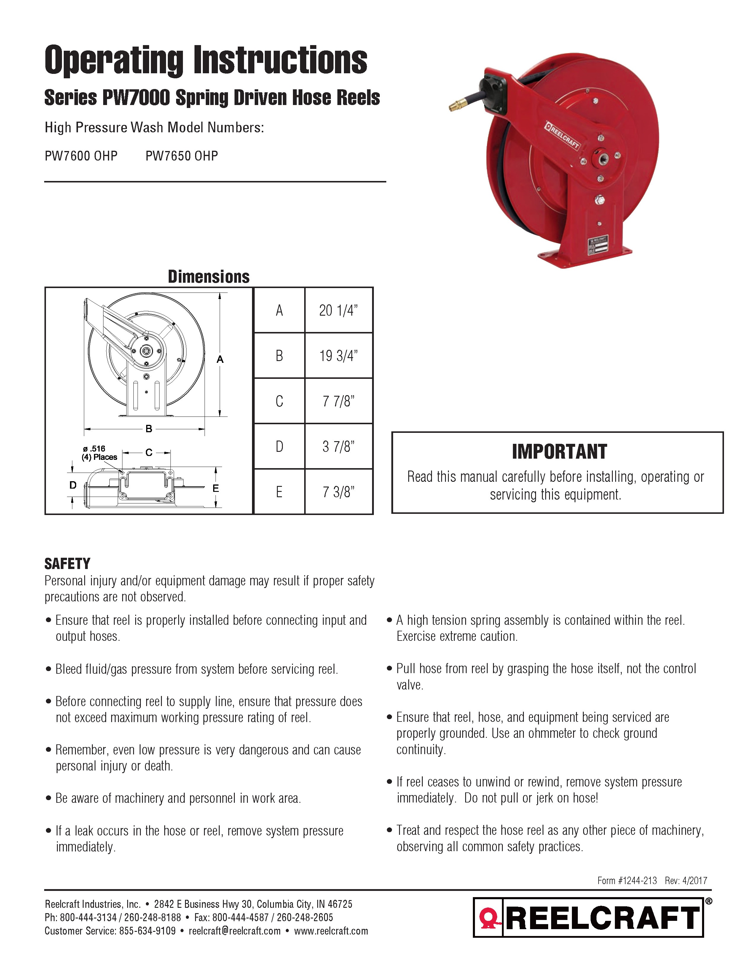 - If your reel still doesn’t retract properly after tension adjustment, check the guide arm position, U-bolt placement, or contact Reelcraft support.